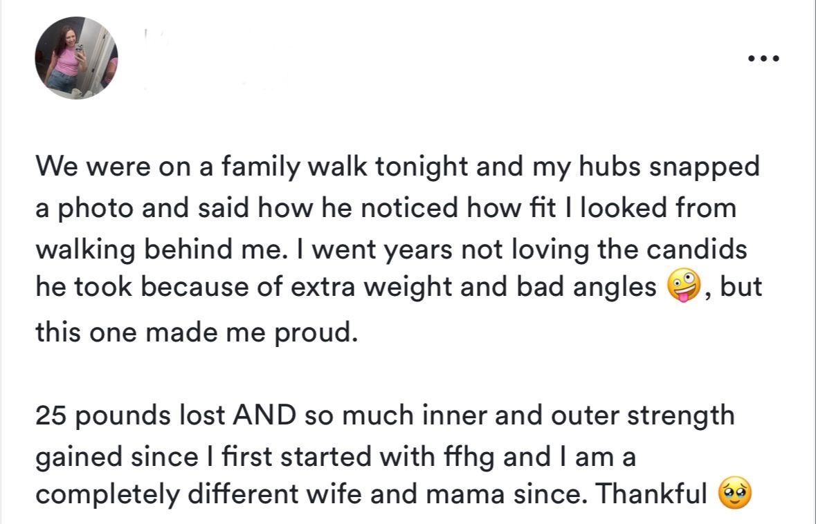 GET LIFETIME ACCESS FOR ONLY $27!“In 3 months, I've lost 17 pounds & become stronger inside and out...all thanks to Fit for His Glory.”